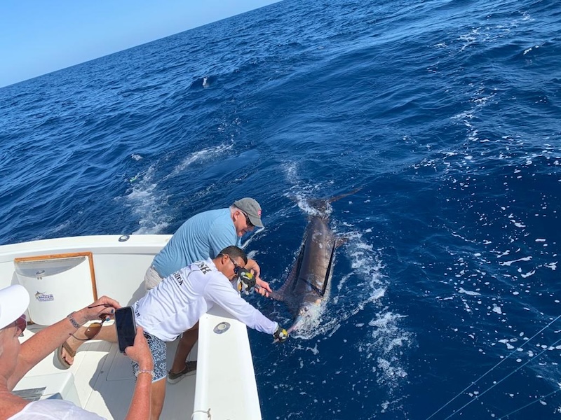 Enjoyed our day with Capt Frank, Luis and Kendal. They worked hard all day. We released 7 sails and jumped off a black marlin on a 3/4 day. Capt Frank prepared lunch and tuna salad was just right!